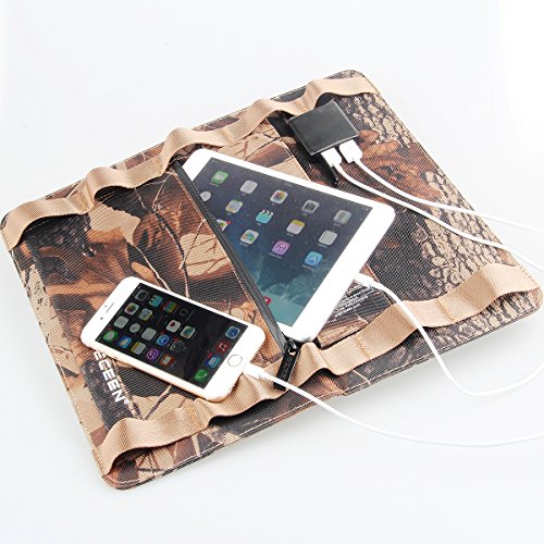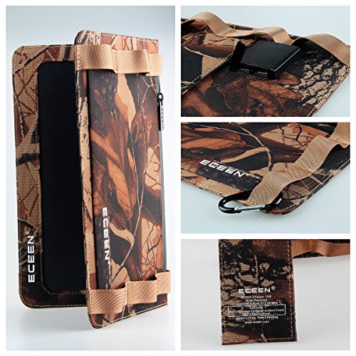 - Feature : HIGH EFFICIENCY: Constructed of SUNPOWER? solar cells, up to 22% efficiency provides 2A output (MAX), easier and faster to replenish juice for your powerless gadgets. / LIGHT WEIGHT & ULTRA COMPACT: Only the half weight of other normal 13W and 14W solar panels on the market ¨C 1.0lb. Folding size only 14 x 7 x 1.0inches for superior portability. / UNIQUE VOLTAGE REGULATOR: Unique voltage regulator design to ensure stable voltage and current, protects your device while charging. Premium Dual USB output design supports charging 2 devices simultaneously in 1.6A total (MAX). / UNIQUE DESIGN: High quality polyester for weather-resistant outdoor durability. Well-placed many hooks enable easy attachment to backpacks (4pcs free carabiners included) for use while on the go. there have a elastic fabric pocket can stock your cell phone or other¡¯s gadgets safety, and stock cables, etc. Easily folding because built-in 5 sets magnets, and with holder design can standing any where / PACKAGE CONTENTS: 1PC* ECEEN 13W solar panel, 4PCS* Carabiners, 1PC* User manual, 1PC * 40cm Micro USB cable.