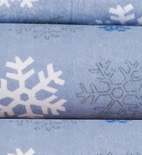 Pointehaven Heavy Weight Printed Flannel 100-Percent Cotton Sheet Set, Snow Flakes, Queen