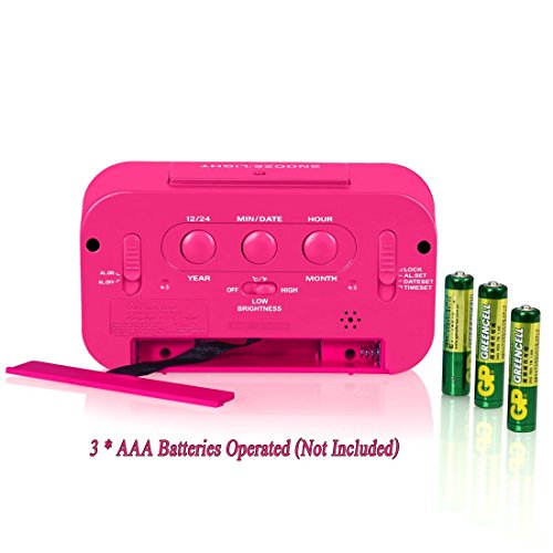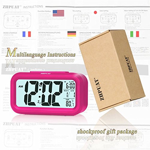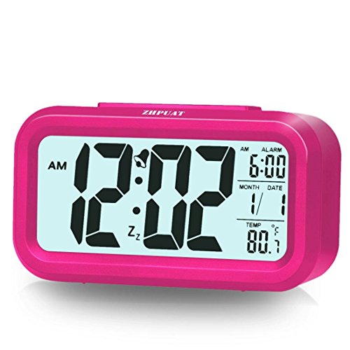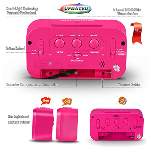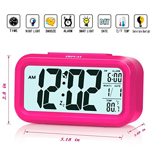 ZHPUAT Alarm Clock for Kids, 4.6" Smart Backlight Digital Clock with Dimmer for Girls (Pink)