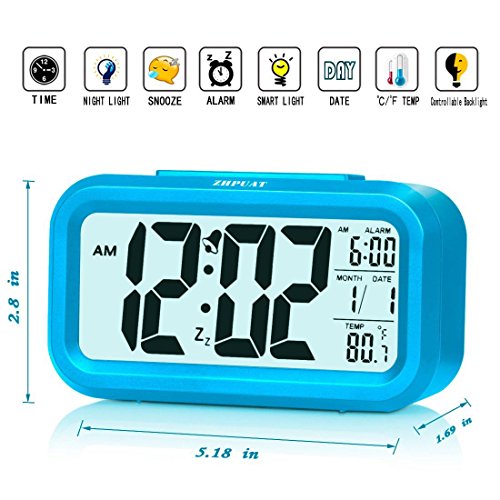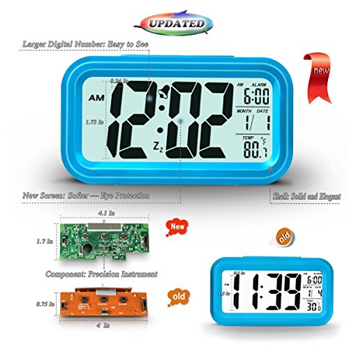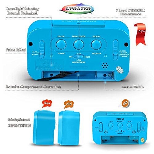 [Upgrade Version] ZHPUAT 4.6" Smart Backlight Alarm Clock with Dimmer (Blue)