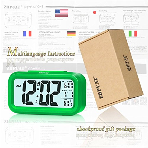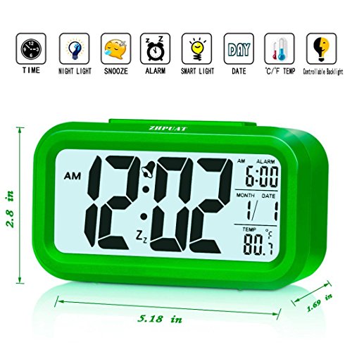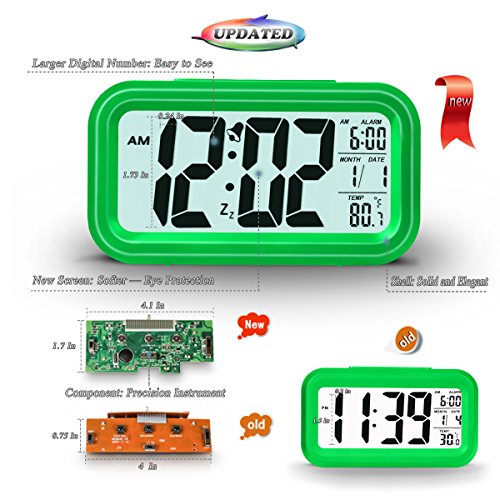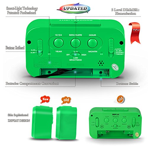 [Upgrade Version] ZHPUAT 4.6" Smart Backlight Alarm Clock with Dimmer (Green)