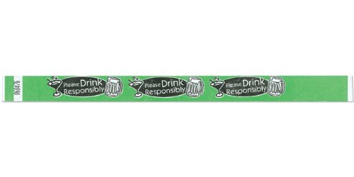 -. Binding : Office Product -. Brand : Precision Dynamics -. Color : Green -. EAN : 0633090590924 -. Feature : Width 3/4" / Expressions wristbands feature fun, colorful pre-P.R.Inted designs that your guests will love!.Rotate colors and designs for different days of the week to keep your admissions secure / Made of DuPont® Tyvek® which is economical, water-resistant, and comfortable. / One size fits all. Strong adhesive closure with tamper-resistant feature that shreds if tampered with. Wristbands are serial numbered. -. HazardousMaterialType : Unknown -. Label : Precision Dynamics -. Manufacturer : Precision Dynamics -. Model : NTX88-75-PDM -. MPN : NTX88-75-PDM -. PackageQuantity : 500 -. PartNumber : NTX88-75-PDM -. ProductGroup : Office Product -. ProductTypeName : OFFICE_PRODUCTS -. Publisher : Precision Dynamics -. Size : 3/4" -. Studio : Precision Dynamics -. Title : Tyvek Wristbands - Please Drink Responsibly - Green Color -. UPC : 633090590924