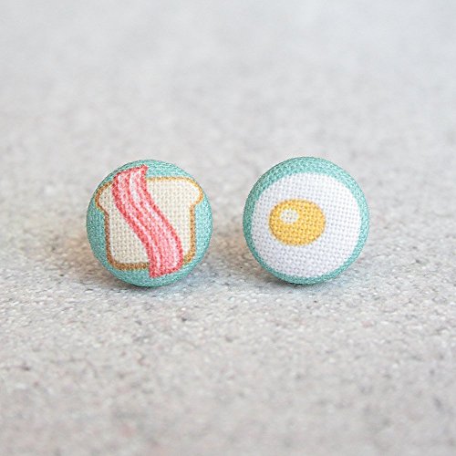 -. Title : Bacon Eggs and Toast Breakfast Fabric Button Earrings