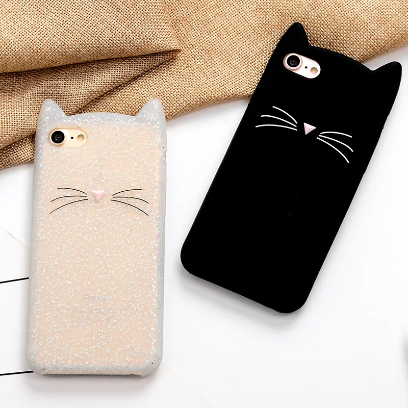Features:3D Glitter Bearded cat silicon case