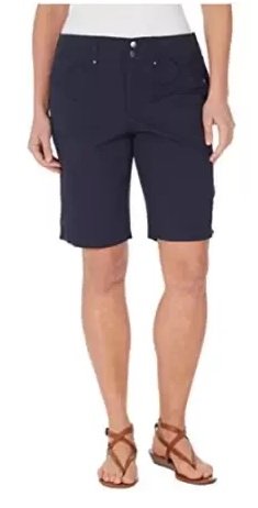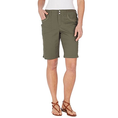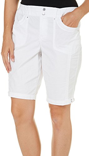 Binding : Apparel Product Description YKK zip fly with double button closure Two front patch pockets and two back pockets Lightweight Partial elasticized ribbed waistband for a comfortable fit 5 belt loops to accommodate up to a 2 (in) belt Decorative detail around pockets Content: 97% Cotton | 3% Spandex Sizing: 6-24W Inseam (in): 11 Care Instructions: Machine wash cold with like colors Only non-chlorine bleach when needed Tumble dry low Warm iron when needed 0