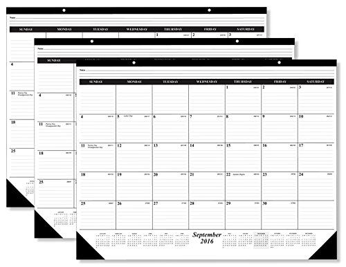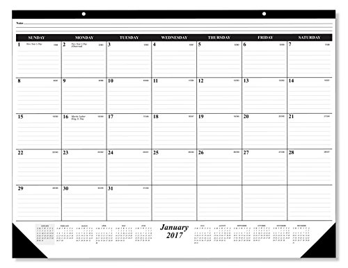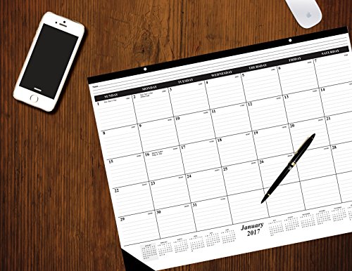 PLAN AHEAD WITH EASE : This 12-month calendar runs thru 2017 and features one month per page with a full calendar year printed at the bottom of each sheet. The large ruled blocks help keep your memos, appointments, and dates neat and clear for future planning at a glance.