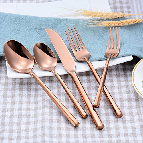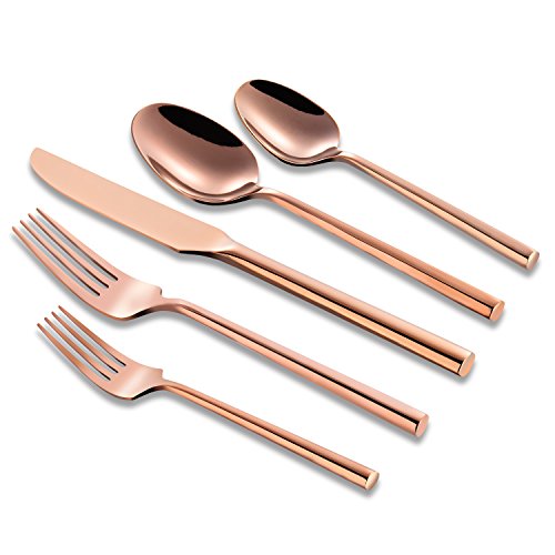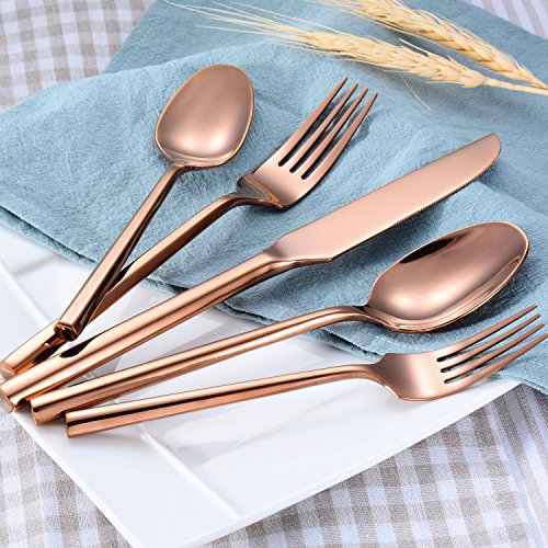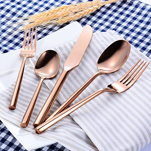 Flatasy Stainless Steel 20-Piece Rose Gold Plated Hexagon Flatware Set,Forged Cutlery Dinnerware Service for 4