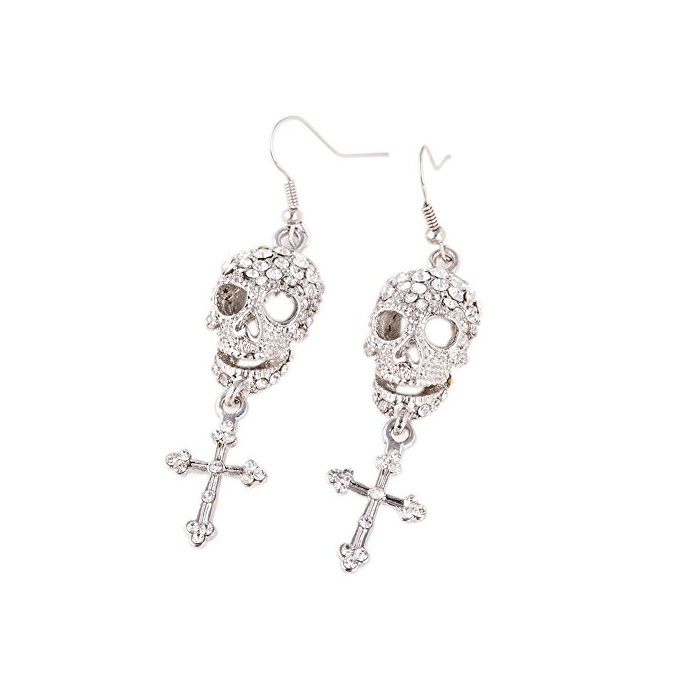원본상품명: (エバベア)EVBEAレディス ジュエリ ビジュ クロス ドクロ ダイヤ イヤリング スカル イヤリング ホワイト イヤリング キュト シルバ メタル カジュアル アクセサリ