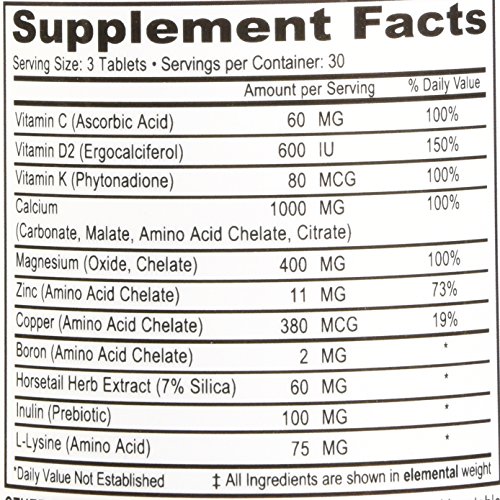 Includes Calcium, Magnesium, Zinc, Vitamin D, Boron, Vitamin C, and Copper