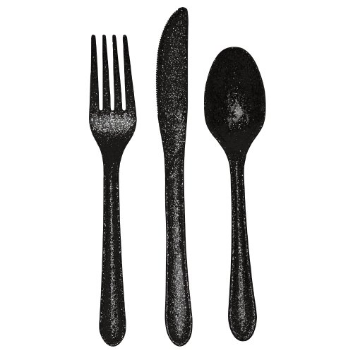 Creative Converting 24 Count Assorted Premium Plastic Glitz Glitter Disposable Cutlery, Black