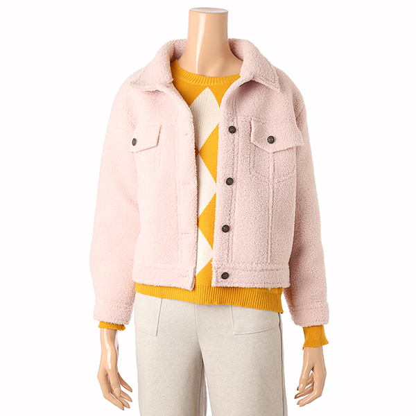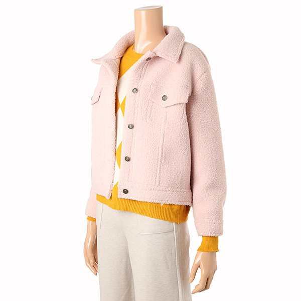 살짝 뽀글이 디자인의 크롭스타일 핑크블리 자켓입니다.