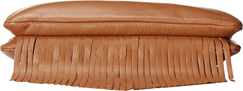 Dual zip closure at top with magnetic snap closure at center to provide additional storage. Removable carry strap at top with antique hardware. Removable and adjustable shoulder strap. Sleek exterior features polished hardware, brand logo ornament at top, tassel embellishments at bottom, and brand logo patch at back. Fully lined polyester interior. Interior boasts two separate compartments, snap flap compartment for storage, and single slip pocket for organization. Imported.