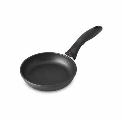 Swiss Diamond's 20 cm (8”) fry pan heats evenly, will never warp, and requires only a soapy sponge to wash. The secret is Swiss Diamond's custom nonstick coating formula reinforced with real diamond particles. The skillet's perfectly flat base will not tip or spin, and prevents hot spots. Also available with a tempered glass lid sold separately. Used by discerning home chefs around the world, Swiss Diamond’s PFOA-free cookware features unsurpassed nonstick performance for healthy cooking and easy clean-up. The patented nonstick coating, reinforced with real diamond particles, allows oil-free cooking and cleans up with just warm soapy water. No more scrubbing and soaking! Swiss Diamond’s patented nonstick coating is reinforced with real diamonds for excellent durability and resilience. Why diamonds? Three reasons: they are durable, they are naturally nonstick, and they conduct heat better than any metal. A perfect combination for a lifetime of cooking excellence. Swiss quality is visible in every aspect of Swiss Diamond cookware. Heavy-duty cast aluminum will never warp, while the perfectly flat base distributes heat evenly and will not tip or spin. The rivet-free interior prevents unsightly food build-up that can lead to bacterial growth. The ergonomic handle, designed for comfort and balance, stays cool on the stovetop. All Swiss Diamond products are oven-safe up to 500 degrees F (260 degrees C) and suitable for use on gas and electric cooktops – induction series sold separately. Made in Switzerland with an eco-friendly production process.Feature