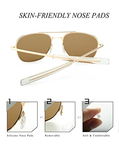 -. Feature : TAC POLARIZED LENS - UV400 protection lens can blocks 100% harmful UVA & UVB Rays to protect your eyes; Tri-Acetate Lens is high-grade plastics lens,they are polarized to eliminate glare, reduce eye fatigue, impact and scratch-resistant for durability. / STURDY BAYONETS - Made with metal frame with bayonet temples. We add bump metal blocker on the legs, so the bayonets stay secured and will not keep falling off of the temple. / HOT CLASSICAL - The classic aviator 55mm Sunglasses are great suitable for fishing, dirving, military and air force etc. outdoor activities. Classical and stylish design, with rich color combinations of frames and lens. / SKIN-FRIENDLY NOSE PADS - Environmental & skin-friendly soft and comfortable long-time wearing without fatigue. / 90 DAY MONEY BACK GUARANTEE - We provides LIFETIME AFTER SALE SERVICE for all products, in case any broken problem happens, pls feel free to contact our customer service. We will be happy to solve the problem until satisfaction. You have no risk to try and we will provide you the best service!