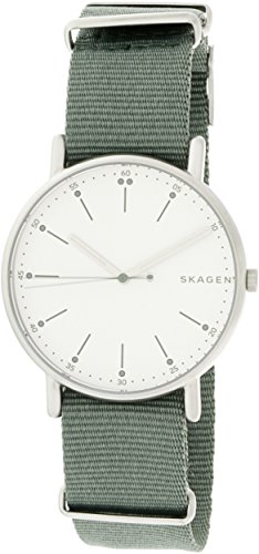 Skagen Men's Signature Stainless steel case, Nylon strap, White dial, Quartz movement, Scratch-resistant mineral, Water resistant up to 5 ATM - 50 Meters - 165 Feet