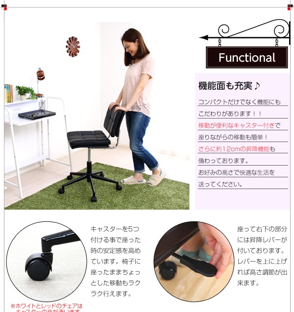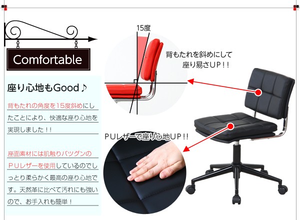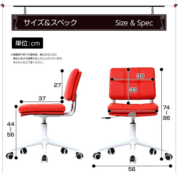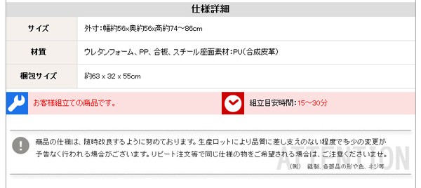 【商品について】■サイズ:外寸:(約)幅56x奥行き56x高さ74~86cm※商品重量(約)7kg■カラー:ブラック レッド ブラウン ホワイト■素材:ウレタンフォーム、PP、合板、スチール座面素材:PU(合成皮革)■その他:・お客様組立商品です ※メーカー直送品、商品代引き不可