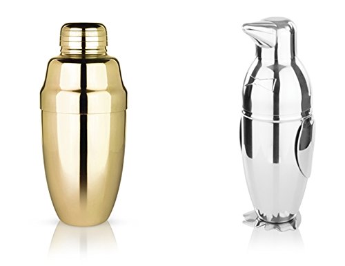 -. Title : Gold Heavyweight and Penguin Cocktail Shaker, Set of 2