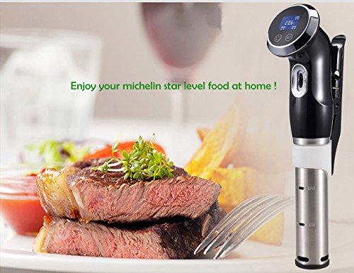 - •PRECISED TEMPERATURE & ACCURATE TIMER -With absolute accuracy for up to 60 hours to +/- 0.1 °C from 0°C to 95°C in near silence,you can set the precise temperature and the accurate timer,enable you to cook your food in sealed bags in better textures and flavors with no worry of over-cooking,No SMELL as well.