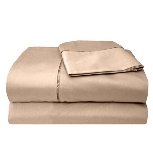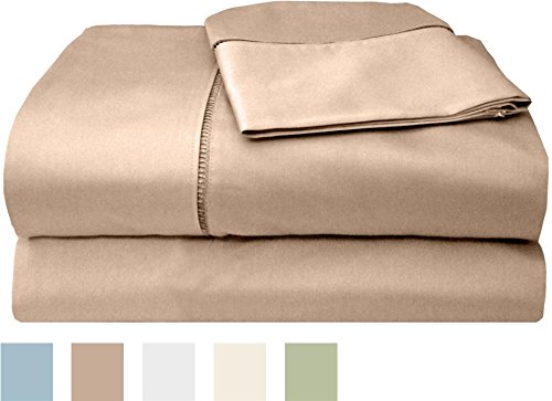 Veratex Legacy Collection 300 Thread Count 100% Egyptian Cotton Sateen Bed Sheet Set With Elegant Stitch Hem Design, King Size, Taupe
