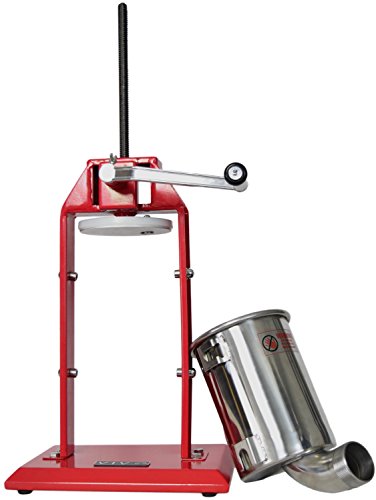 METAL CONSTRUCTION - Stainless Steel cylinder and spout, as well as stable metal base and crank. All gears and pistons are also constructed of durable metal.