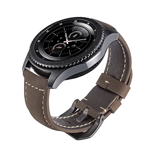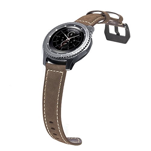 Low-pitched vintage leather band with stainless steel black clasp perfectly fits your new Gear S3 Frontier Smart watch