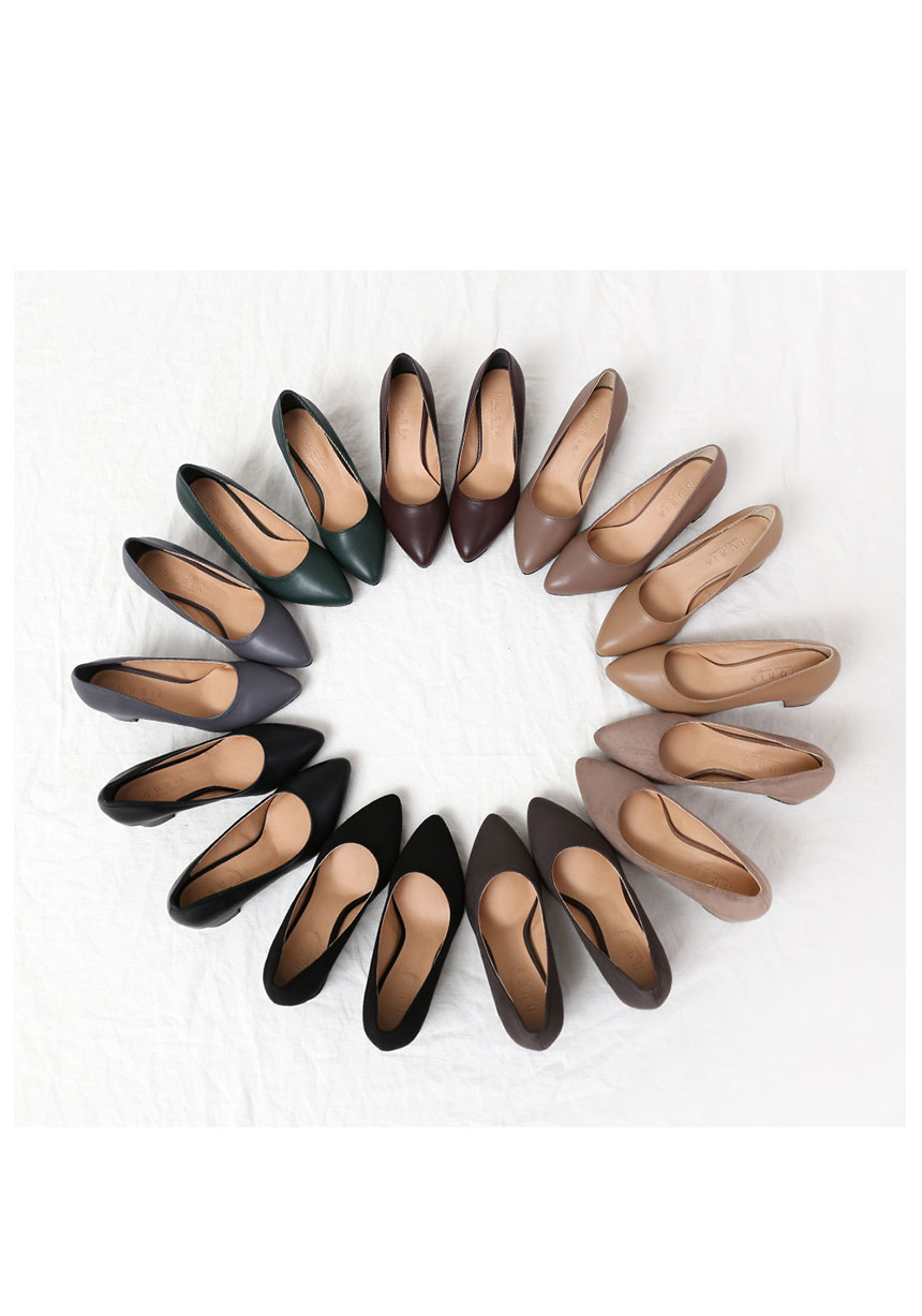 기본 바디의 펌프스 힐이에요스틸레토 쉐입이여서 심플한 바디라인과높지않은 5cm 미들 높이의 힐이라유행타지 않은 색상이에요^^