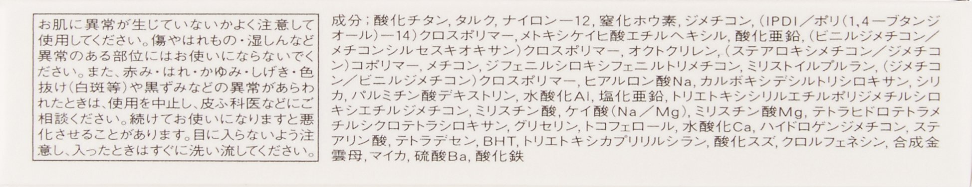 Crosspolymer, octocrylene, (stearoxymethicone / dimethicone) copolymer, methicone, diphenylsiloxyphenyl trimethicone, myristoyl pullulan, (dimethicone / vinyl dimethicone) crosspolymer, Na hyaluronic acid, carboxydecyltrisiloxane, silica, palmitic acid dextrin, water