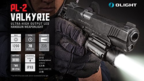 - PACKAGE CONTENTS - Includes Olight PL-2 Valkyrie pistol light, 2x Olight CR123A batteries, 2x Backup LumenTac CR123A batteries, GL and 1913 mount adapters, instruction manual and warranty card