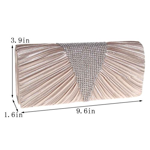 -. Feature : DESIGN - This luxury pleated rhinestone evening clutch makes you noble and elegant. / CAPACITY - It's a super fashionable evening clutch that fit everything you need (cell phone, lipstick, a few bobby pins, ID, debit card, cash). / CARRYING OPTIONS ¨CYou can hold this evening bag in your hand or you can also use it as a shoulder bag with the chains coming with the bag. / OCCASIONS - Great for wedding, party, prom£¬etc. Just get this clutch purse to have a wonderful night. / SERVICE ¨C We love our customer, we will try our best to address all the issue they may meet in time.