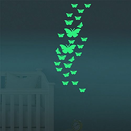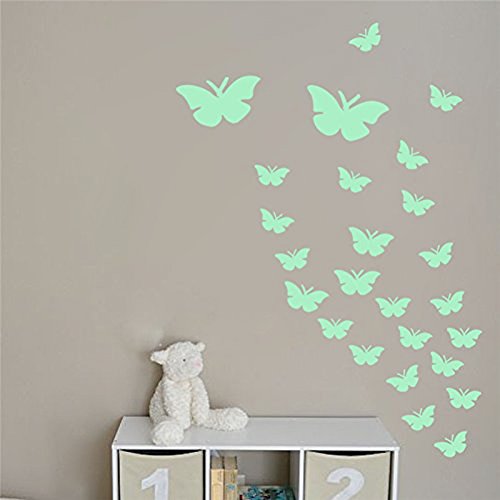 Marsway 12 Pcs Butterflys Night Glow Sticker Luminous Removable Adhesive Kids Room Wall Decal