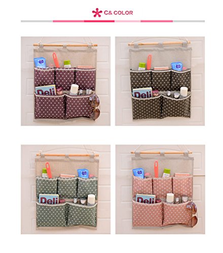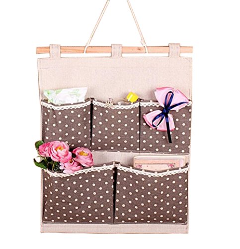 SMYLLS Wall Cloth Hanging Storage Bag with 5 Pockets Home Organizer (brown)