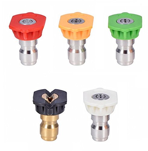 -. Brand : FORSUN -. EAN : 8998294562644 -. Feature : Different spray angle allows you to clean hard-to-reach areas quickly and easily / 5 Pack: 65 Degrees Brass soap nozzle, 0 Degrees Red Stainless Steel Nozzle Tip,15 Degrees Yellow Stainless Steel Nozzle Tip, 25 Degrees Green Stainless Steel Nozzle Tip, 40 Degrees White Stainless Steel Nozzle Tip / Don't use a ladder to clean or spray water for tree with these spray nozzles / Designed for high pressure washing up to 4000 PSI; ADL nozzle cover / More Application: Can be attached to a Quick-Connect Wand for swifter application and more -. Label : FORSUN -. Manufacturer : FORSUN -. MPN : FORSUN-000336 -. PartNumber : FORSUN-000336 -. ProductGroup : Lawn & Patio -. ProductTypeName : OUTDOOR_LIVING -. Publisher : FORSUN -. Studio : FORSUN -. Title : Pressure Washer Spray Nozzle Tips - 1/4 Quick Connection Design 2.5 GPM (5 Pack)
