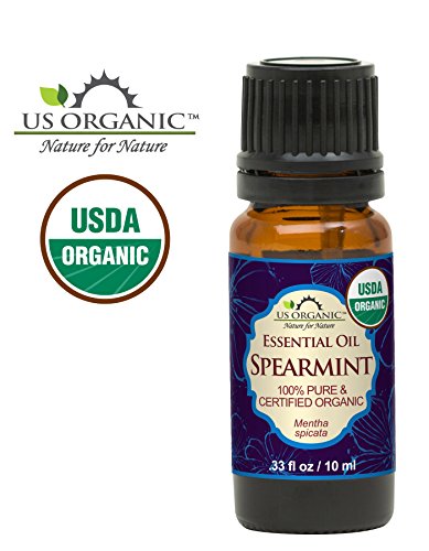 US Organic 100% Pure Spearmint Essential Oil - USDA Certified Organic, Steam Distilled - W/ Euro droppers (More Size Variations Available) (10 ml / .33 fl oz)