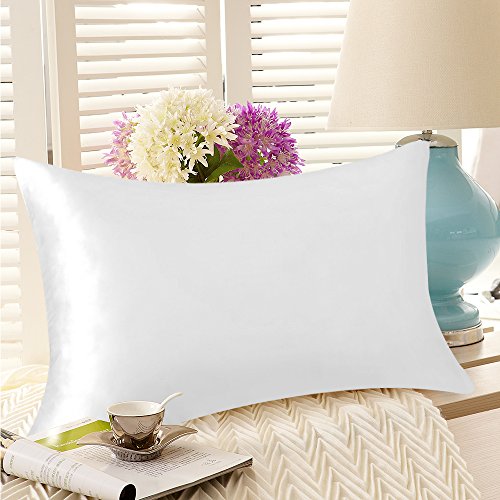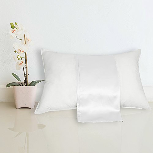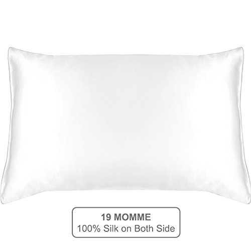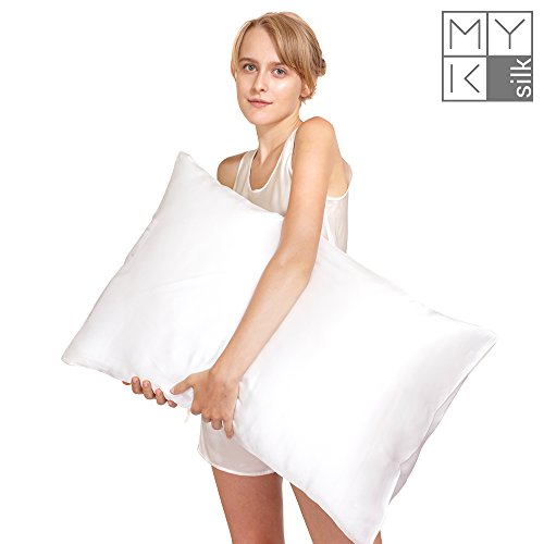 MYK SILK - Hypoallergenic 100% Pure Mulberry Silk Pillowcase for Hair and Facial, Hidden Zipper, 19 Momme, White Queen