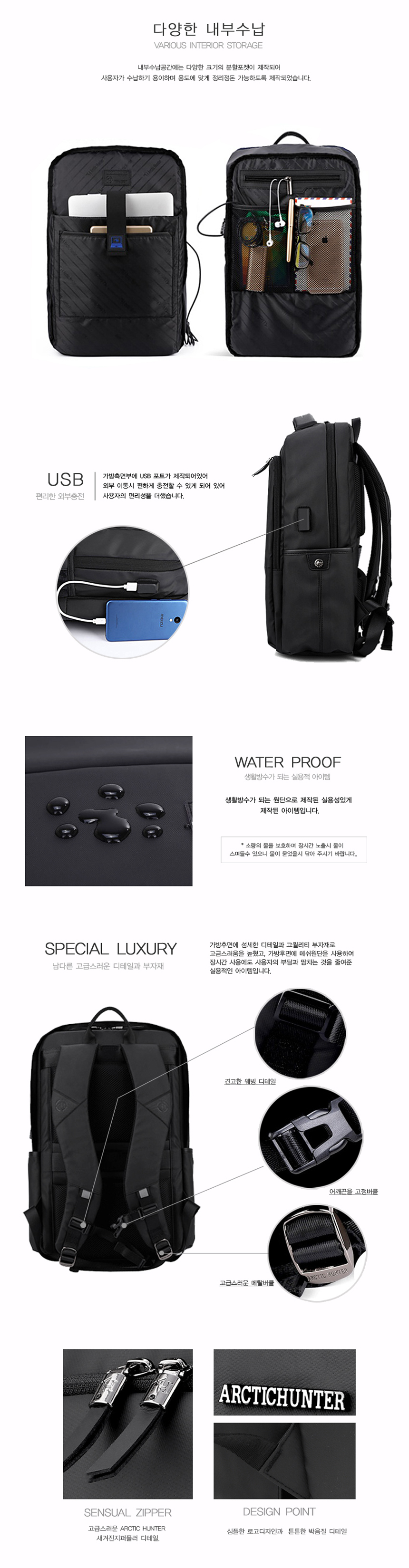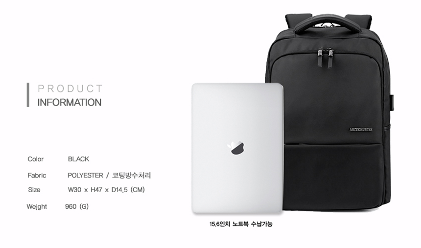 20's black men's backpack Men's notebook college student worker Daily storage Good quality