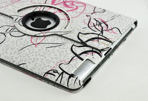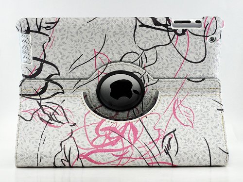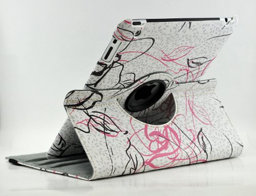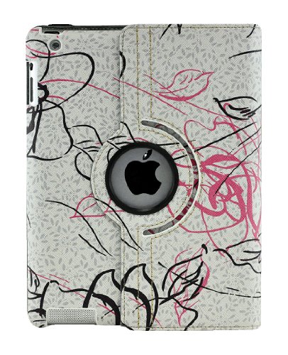 LiViTech Modern Art Flower Design Series 360 Degree Rotating PU Leather Case Cover for Apple iPad 2 3 4 (F128) (White)