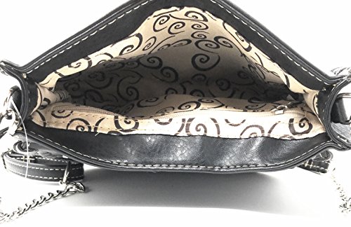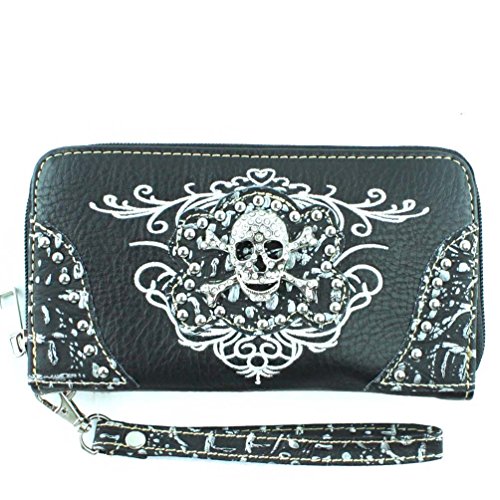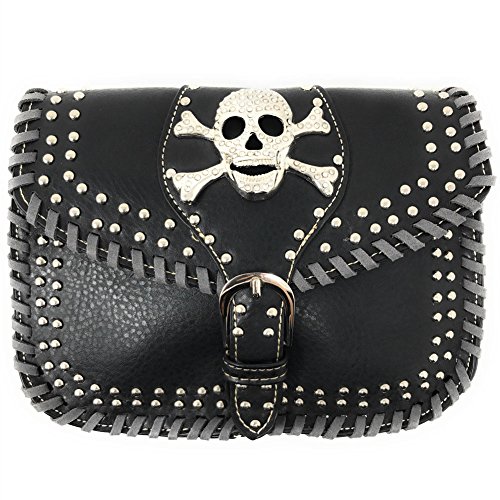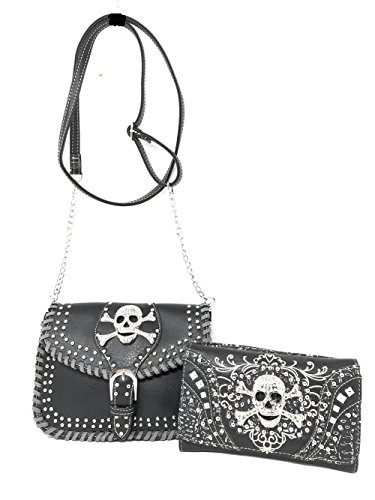 Product Description Rhinestone Metal Skull Leather Women's Handbag, Wallet in 4 Colors.Handbag Size:13' x 8' x 4'. 2 compartments with zipper inside,zipper on top.2 cellphone pockets,deep pocket,extra pocket with zipper on back for everything easy to get. Matching wallet: 7.5' x 4.25' x 1'. pocket with 8 credit card slots , ID slots,3 extra large pocket, 3 cash/check pockets with zipper inside. zipper closure on top. Extra hand wrist.High quality rhinestone metal skull set. Concealed carry pocket is on the back fits most guns. Fast handling and shipping in same business day. 0