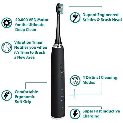 40,000 VPN MOTOR - The SoniClean Black Series Electric Toothbrush has an industry leading 40,000 VPN motor that provides a deep clean while dissolving stains to whiten at the same time. SoniClean is proven to be up to 10x more effective than a manual toothbrush