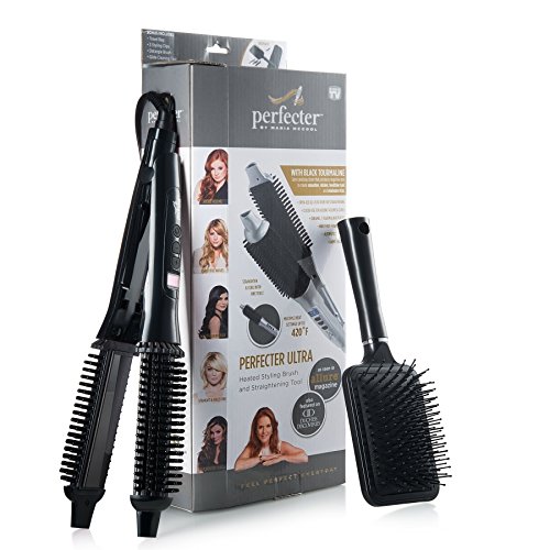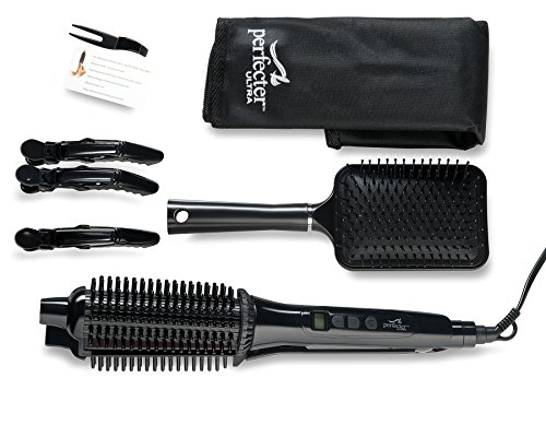 Perfecter Flat Iron Hair Straightener & Hot Round Brush - 2-in-1 Hair Straightening Brush with Digital Temperature Controls - Ionic Ceramic Hair Straightener...