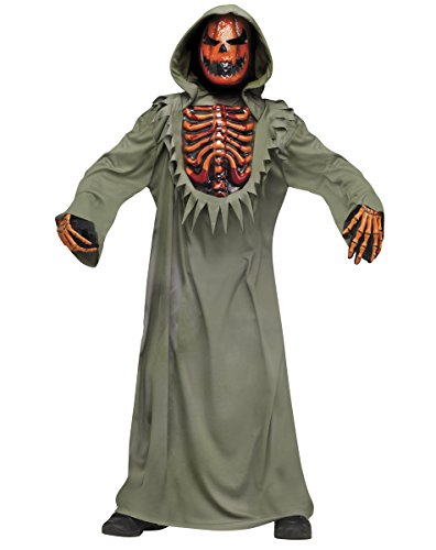 -. Binding : Toy -. Brand : Fun World -. Color : Green -. Department : Costumes -. EAN : 0798257171092 -. Feature : Includes: Hooded robe, pumpkin mask, pumpkin chest w/ heart pump and fake blood, and skeleton gloves / Robe material: 100% Polyester / Robe care: Hand wash in cold water -. IsAdultProduct : 0 -. Label : Fun World -. Manufacturer : Fun World -. MPN : 130812WM -. PackageQuantity : 1 -. PartNumber : 130812WM -. ProductGroup : Toy -. ProductTypeName : TOYS_AND_GAMES -. Publisher : Fun World -. Size : S (4-6) -. Studio : Fun World -. Title : Evil Bleeding Pumpkin Halloween Costume boys size S (4-6) -. UPC : 798257171092
