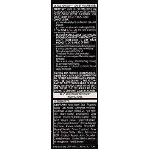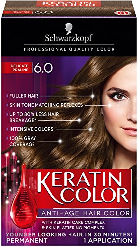 ReleaseDate : 2016-04-09 Studio : Dial Corporation Publisher : Dial Corporation Binding : Health and Beauty Product Description Specially formulated for mature hair, Keratin color uses Unique Collagen Care Complex and Skin Flattering Pigments to deliver younger, fuller looking hair in just 30 minutes. Keratin Coloration acts as a treatment to help repair highly processed, damaged hair with up to 80% less hair breakage. 20 intensive colors deliver 100% gray coverage with a low-odor coloring experience thanks to the Ammonia Control Technology. 0