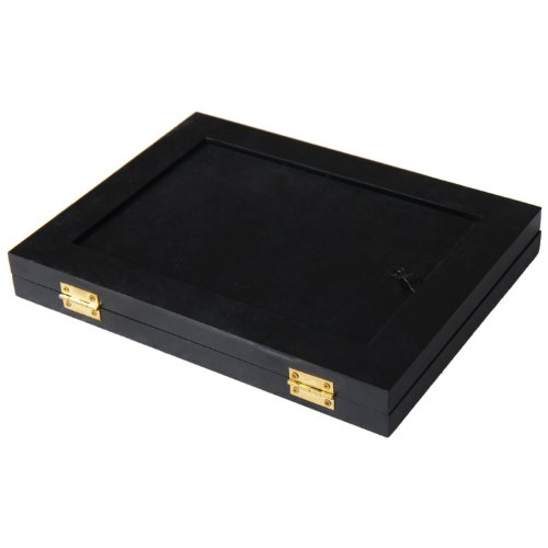 -. Feature : Black matte finish / Materials: wood; glass / Folding design for desktop display; simple to load; removable back panels with sliding pins / Gold-Color hinges / Holds 2-5x7" images