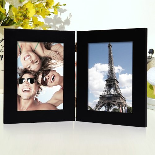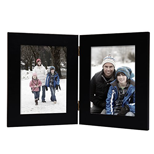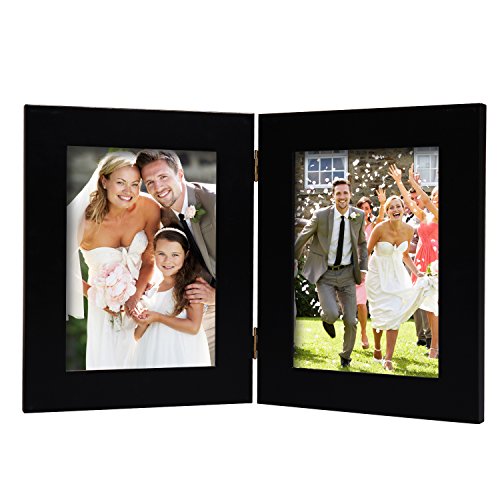 -. Title : Adeco [PF0165] Decorative Black Wood Hinged Table Desk Top Picture Photo Frame, 2 Vertical Portrait Openings, 5x7 inches