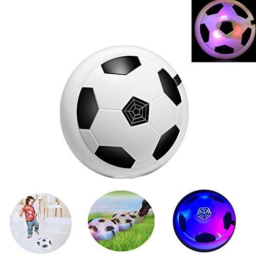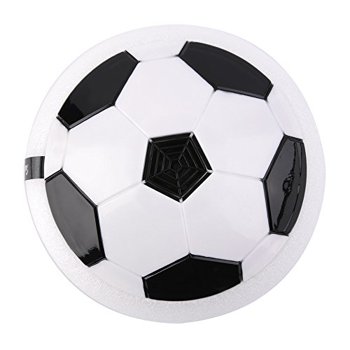 Feature: 1.The ball can give out fluctuant colorful LED light when playing. 2.This hover soccer can be suspended in the air, and kick up very easily. 3.It is a nice toy or multiplayer game prop for family to play together. 4. Kick it, throw it low to the ground, come up with some tricks to do with it. Depend on the way you like to play. 5. A soft cushion of foam surrounding the disk protects furniture from damage. Pneumatic Suspension Technology: Made of Non-toxic plastic, foam edging,flexible, safe and not hurt foot,to prevent the walls and furniture to be damaged.Perfect size enough for small kids or pets to play with. Perfect toy is just for you: Body and Eye Exercise When playing the ball, kids will get both their body and eyes into exercise, which can relax not only the body status but also the optic nerves, benefitting kids' health. Team Spirit Inspiration The team game can help your kid to build good relationship with other kids, enhancing intimacy and bring more fun. New Pet Toys Say bye with unhappy, back to the previous joy, it is still your first love. Your pet will be attracted by colored hover football, join it, play together, get happy again. Specification: Material: Non-toxic plastic Color: White Size: 17*17*7cm Battery: 4 * AA batteries (Not included) Package List: 1 * Pneumatic Suspended Football 0