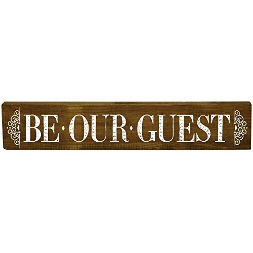 Be Our Guest (Large Caps) Inspirational Pine Block for Women and Men Gift ideas for Husband, Wife, Family, and Best Friends 2" x 6" x 18" by DaySpring Milestone (Dark Walnut)