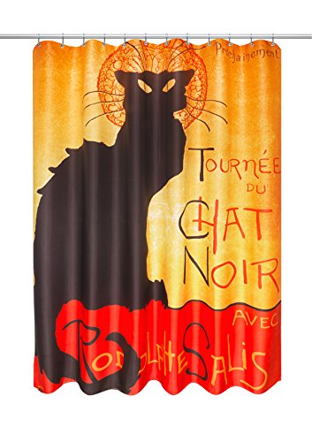 Carnation Home Fashions Chat Noir Museum Collection 100% Polyester Fabric Shower Curtain, 70" x 72", Multi