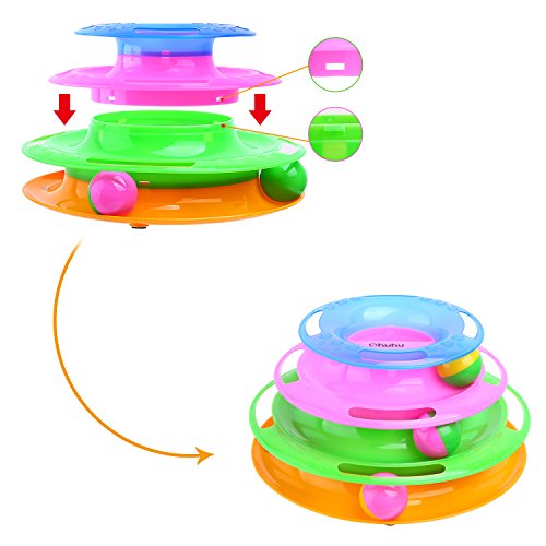 -. Title : Tower of Tracks Ball, Ohuhu Ball Track for Cats, Interactive Toys for Cats with Rainbow 4-Color 3-Level Tracks and Bi-color Balls with Rustling Beads, Pets Kitty Tower Toy
