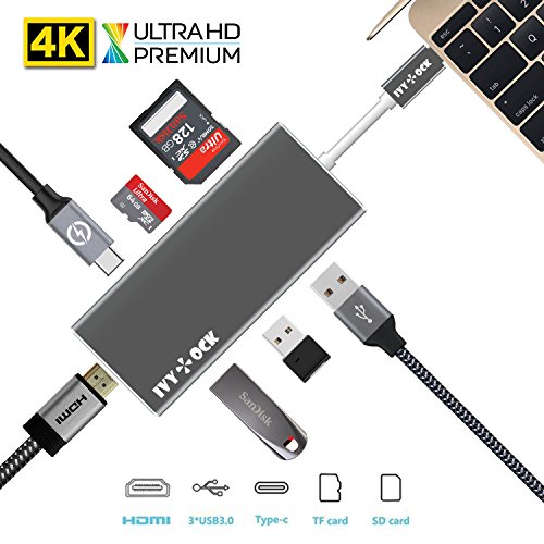 -. Title : USB C Hub, IVYOCK USB-C Adapter with Type C Charging Port, HDMI Output, SD / Micro SD Card Reader, 3 USB 3.0 Ports for MacBook Pro 2015/2016 and more USB C Devices