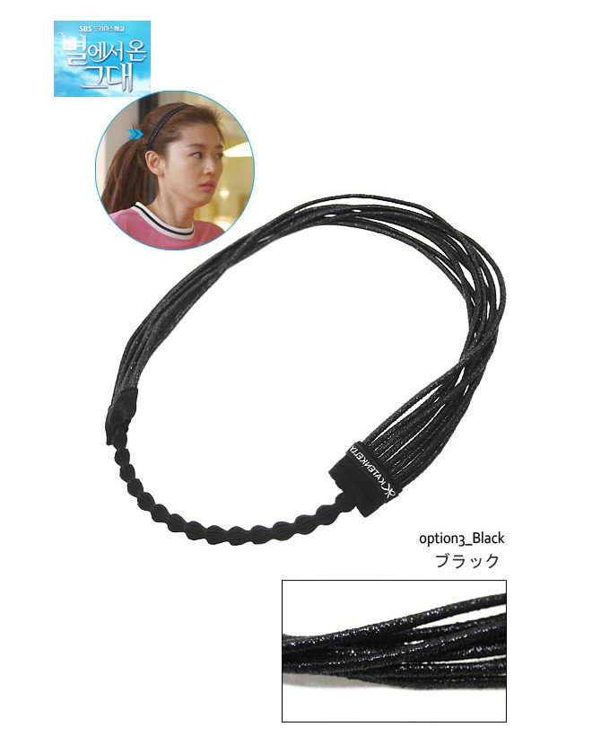 ・素材:ゴムバンド・メーカー:KATENKELLY SEOUL*PC環境により色味が多少異なって見える場合がございます。予めご了承下さいませ。「猟奇的な彼女」チョン・ジヒョン×人気絶頂キムスヒョン主演!『星から来たあなた』協賛アクセサリー★スター女優チョン・ソンイ(チョン・ジヒョン)がルームウェアと着用していたキラキラお洒落ヘアバンド☆オーソドックスなアップスタイルもスタイリッシュに仕上げるバンドアイテム!ゴージャス感のある細ゴムを幾重にも束ねた装飾、後ろ側はソフトなエラスティックゴムバンド仕様で着用感も良いアイテムです☆ゴールド/シルバー/ブラックカラー