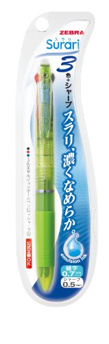 Zebra Multi Function Pen Surari 3S, 0.7mm Ballpoint Pen Black & Red & Blue Ink, 0.5mm Mechanical Pencil, Light Green Body